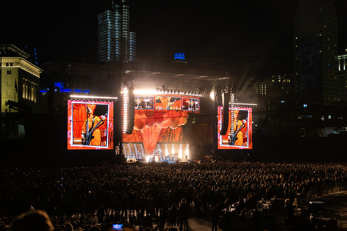 A deeply memorable part of the show was an unplanned interruption that lead to a ten minute delay leaving fans wondering what was going on after watching the whole band scurry offstage in the middle of playing “Longview.” It wasn’t until after the show was over that many of us were looped in to what happened: An unauthorized drone was being flown over Comerica Park, creating a safety concern which was then dealt with by DPD. After a potential crisis was averted, the band came back onstage and picked up right where they left off in the middle of “Longview.”