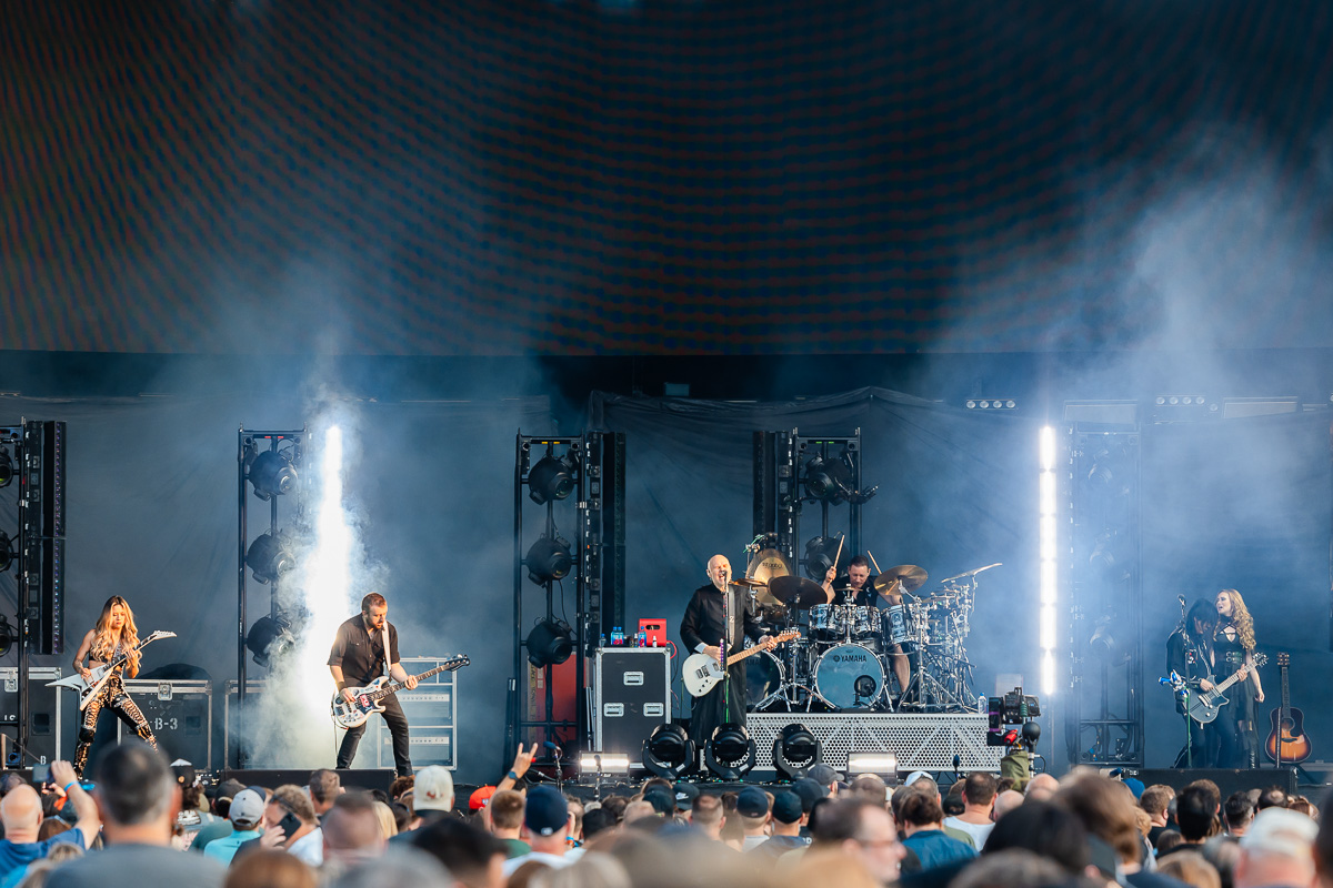 After the three openers got the night started, the stadium of 35,000 Green Day fans waited eagerly for the band to take the stage. After playing Queen’s “Bohemian Rhapsody” over the speakers for the crowd to all sing together and the band’s Punk Bunny mascot running around onstage to engage the crowd while the Ramones’ “Blitzgrieg Bop” played, Green Day emerged onto the stage. First, they played the single from their 2024 album Saviors, “The American Dream is Killing Me” – A treat for plenty, but the concluding chords of their new song made way for the anniversary performance everybody was waiting for as Green Day dove into Dookie with the first track, “Burnout.”