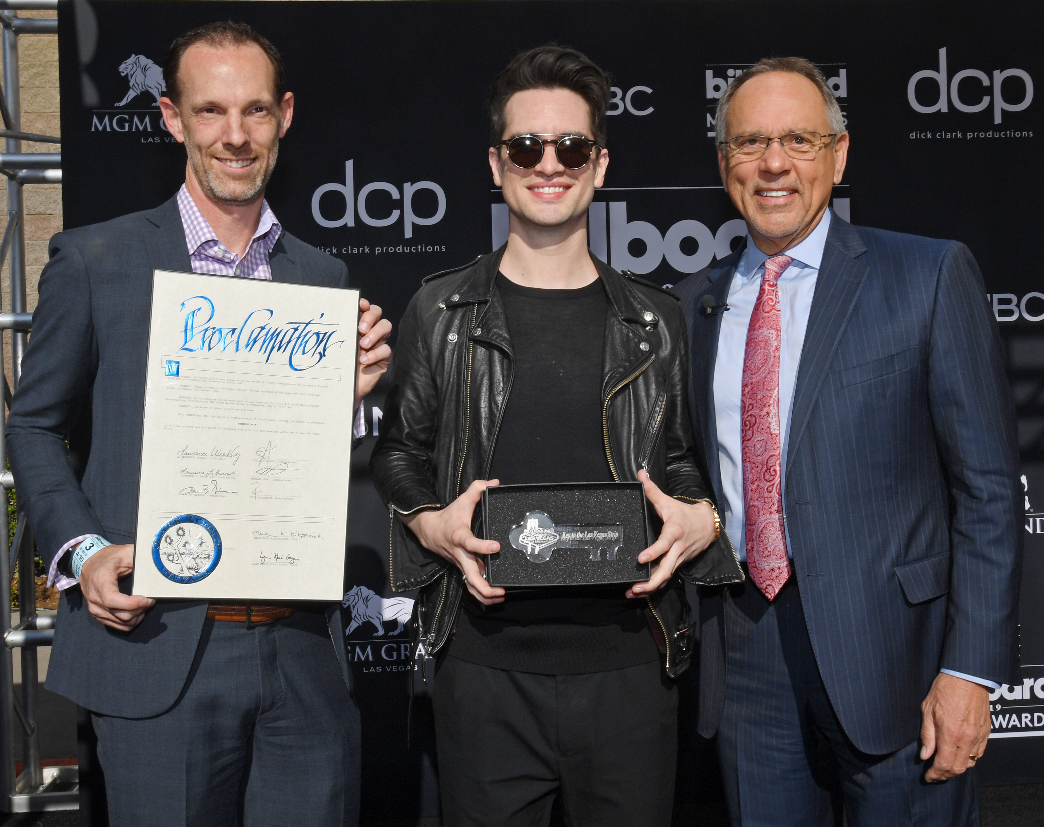 This morning, Las Vegas native and Panic! at the Disco frontman Brendon Urie received the Key to the City of his hometown in recognition of his outstanding achievements in music. Presented to him by Las Vegas Commissioner Jim Gibson on the eve of two highly-anticipated performances at the Billboard Music Awards. Urie joins the likes of renowned artists like Elvis Presley, Madonna, and Britney Spears who received the honor before him.