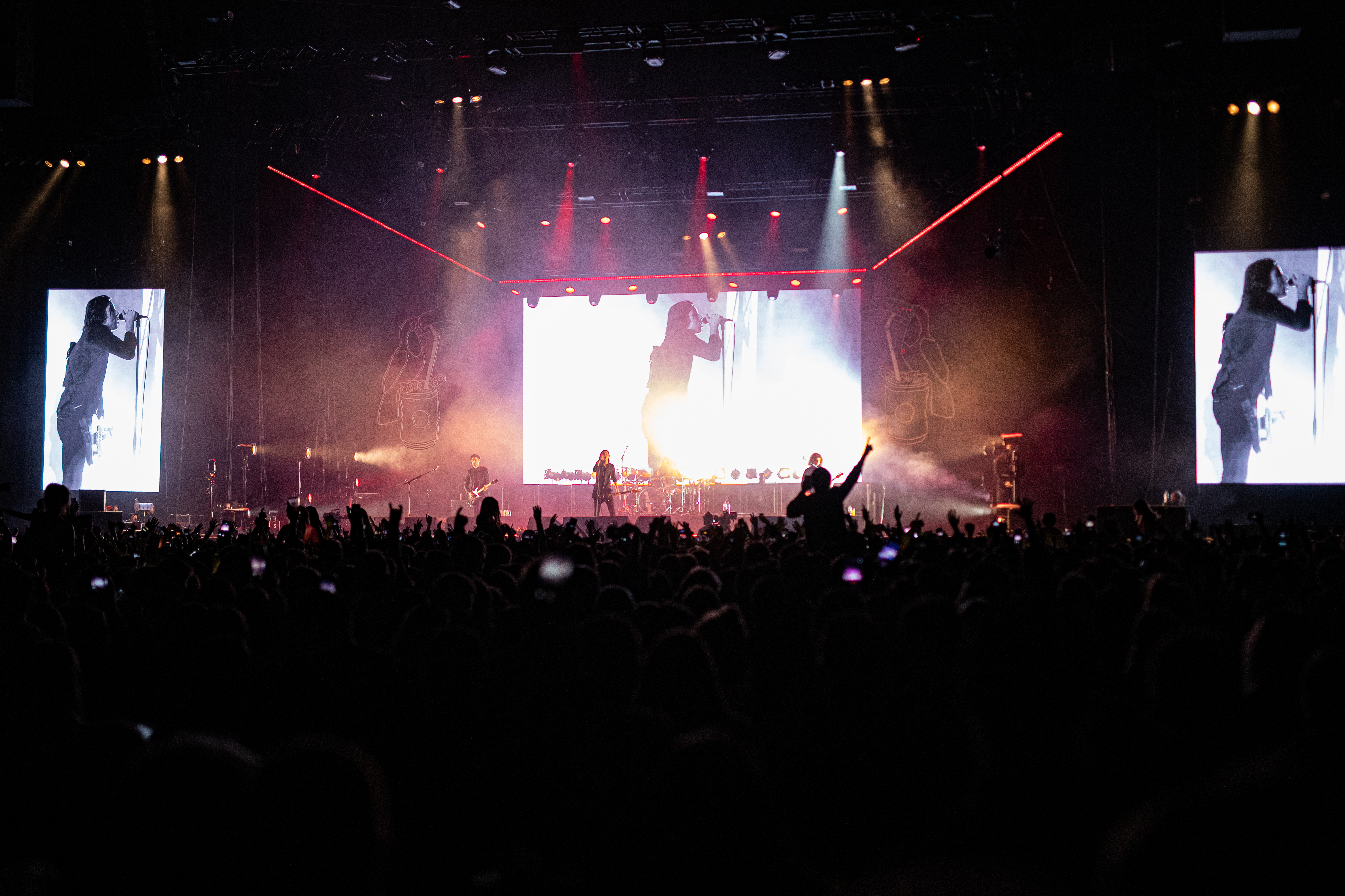 Upon entering the arena is buzzing with people grabbing their merchandise or rushing to the floor and honestly who can blame them? Fans attention is drawn to the stage as the traditional opening tune of Dean Martin’s “Ain’t That A Kick In The Head”. The lights go out and the toucan that graces their album cover lights up on both sides of the stage as the all four men walk out. They break into “Longshot” a tune that teased everyone at the beginning of the year of what they were up to. Fans, of all ages, ate it all up and jumped trying to match the energy the band was giving out. Chanting, dancing, signing along, and hopping on each other’s shoulders; fans where consumed by the music.