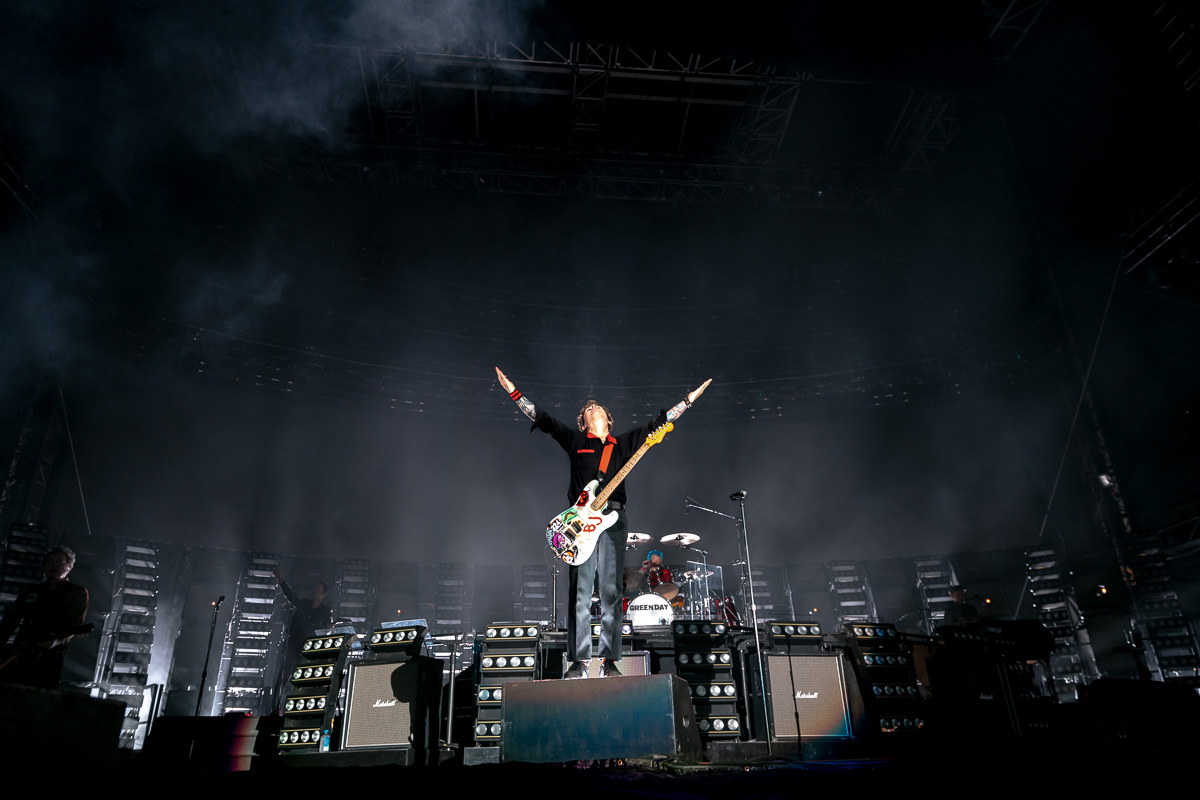 “When you play in front of that many people, you don’t try to create intimacy – You try to create an event. You try to create a spectacle,” said Green Day’s frontman Billie Joe Armstrong in the band’s 2005 documentary, Bullet in a Bilble, when asked about what feels different about playing in front of enormous crowds such as the 65,000 people attending their filmed Milton Keynes Bowl performance in June of 2005. At the time, they were on tour promoting their most recent record, American Idiot, which undoubtedly marked Green Day’s entry into a new era of fame, respect, and notoriety.