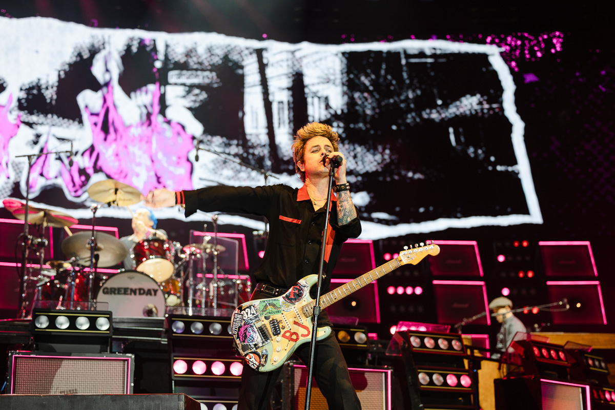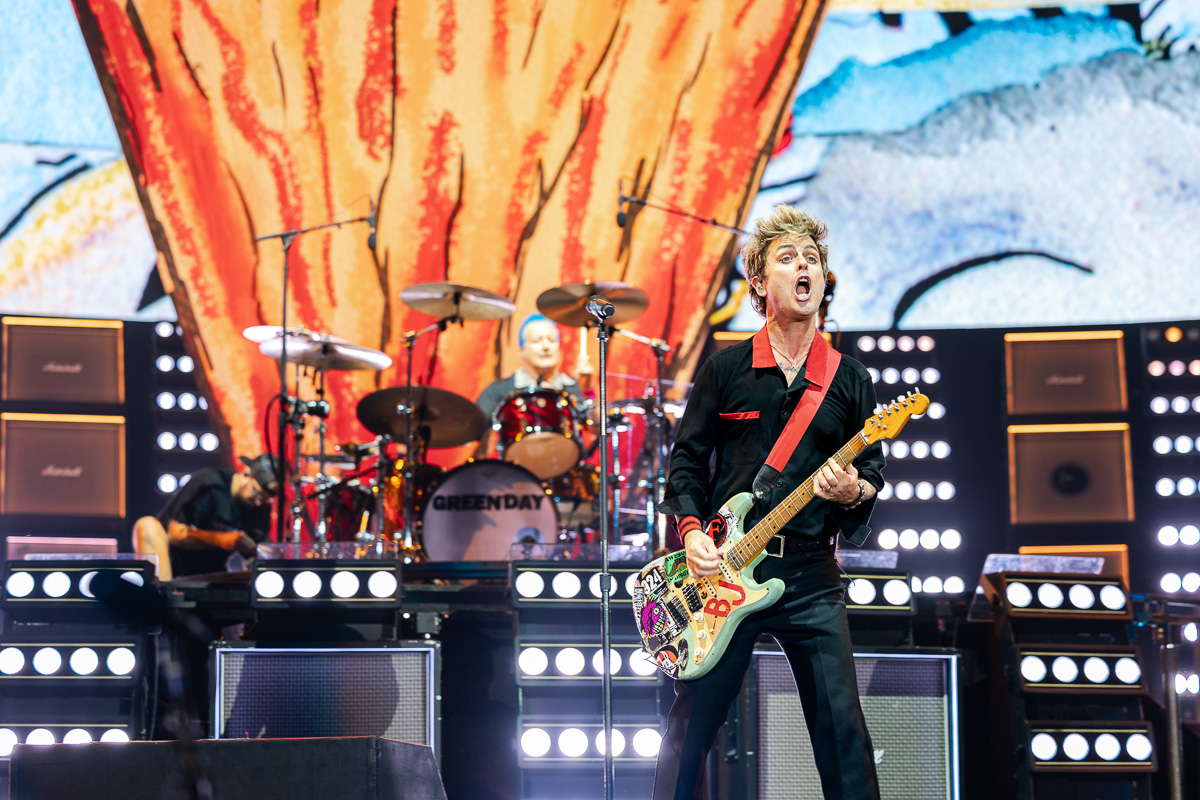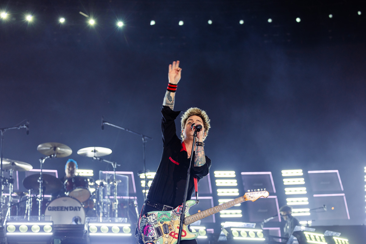 After the three openers got the night started, the stadium of 35,000 Green Day fans waited eagerly for the band to take the stage. After playing Queen’s “Bohemian Rhapsody” over the speakers for the crowd to all sing together and the band’s Punk Bunny mascot running around onstage to engage the crowd while the Ramones’ “Blitzgrieg Bop” played, Green Day emerged onto the stage. First, they played the single from their 2024 album Saviors, “The American Dream is Killing Me” – A treat for plenty, but the concluding chords of their new song made way for the anniversary performance everybody was waiting for as Green Day dove into Dookie with the first track, “Burnout.”