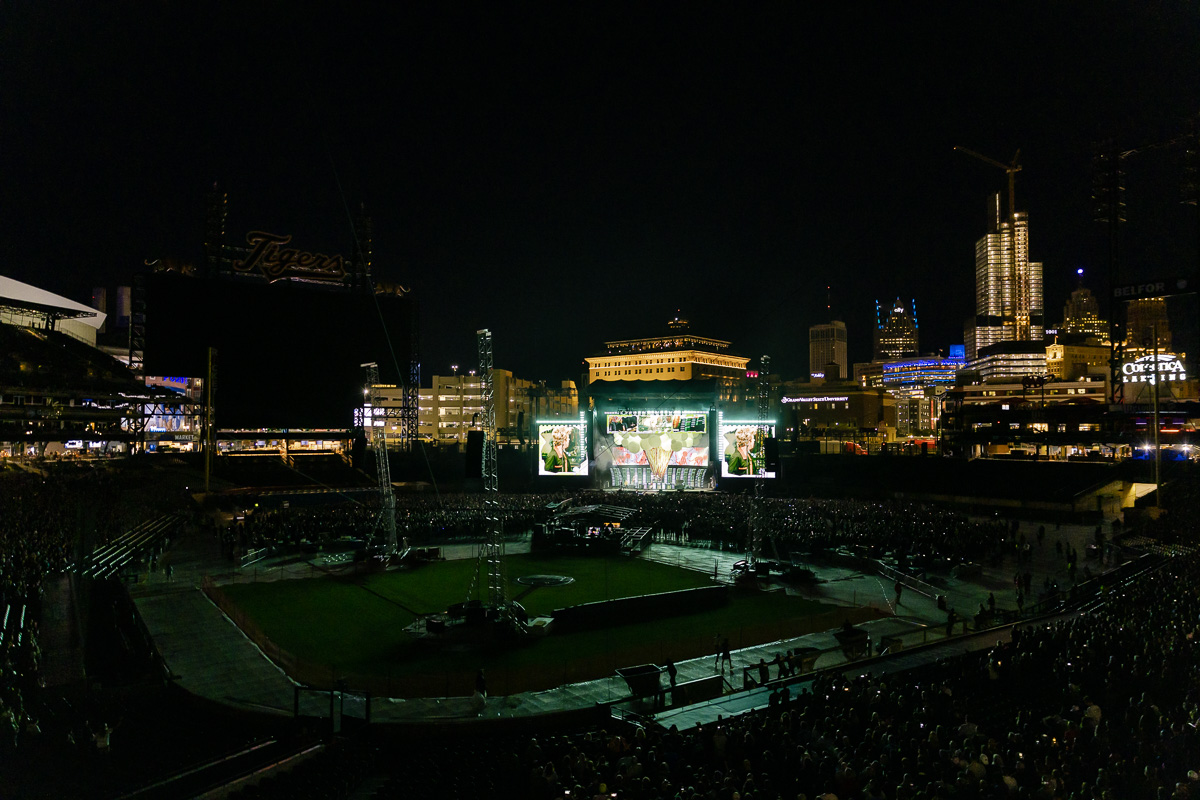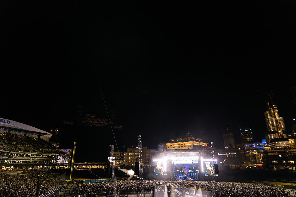 A deeply memorable part of the show was an unplanned interruption that lead to a ten minute delay leaving fans wondering what was going on after watching the whole band scurry offstage in the middle of playing “Longview.” It wasn’t until after the show was over that many of us were looped in to what happened: An unauthorized drone was being flown over Comerica Park, creating a safety concern which was then dealt with by DPD. After a potential crisis was averted, the band came back onstage and picked up right where they left off in the middle of “Longview.”