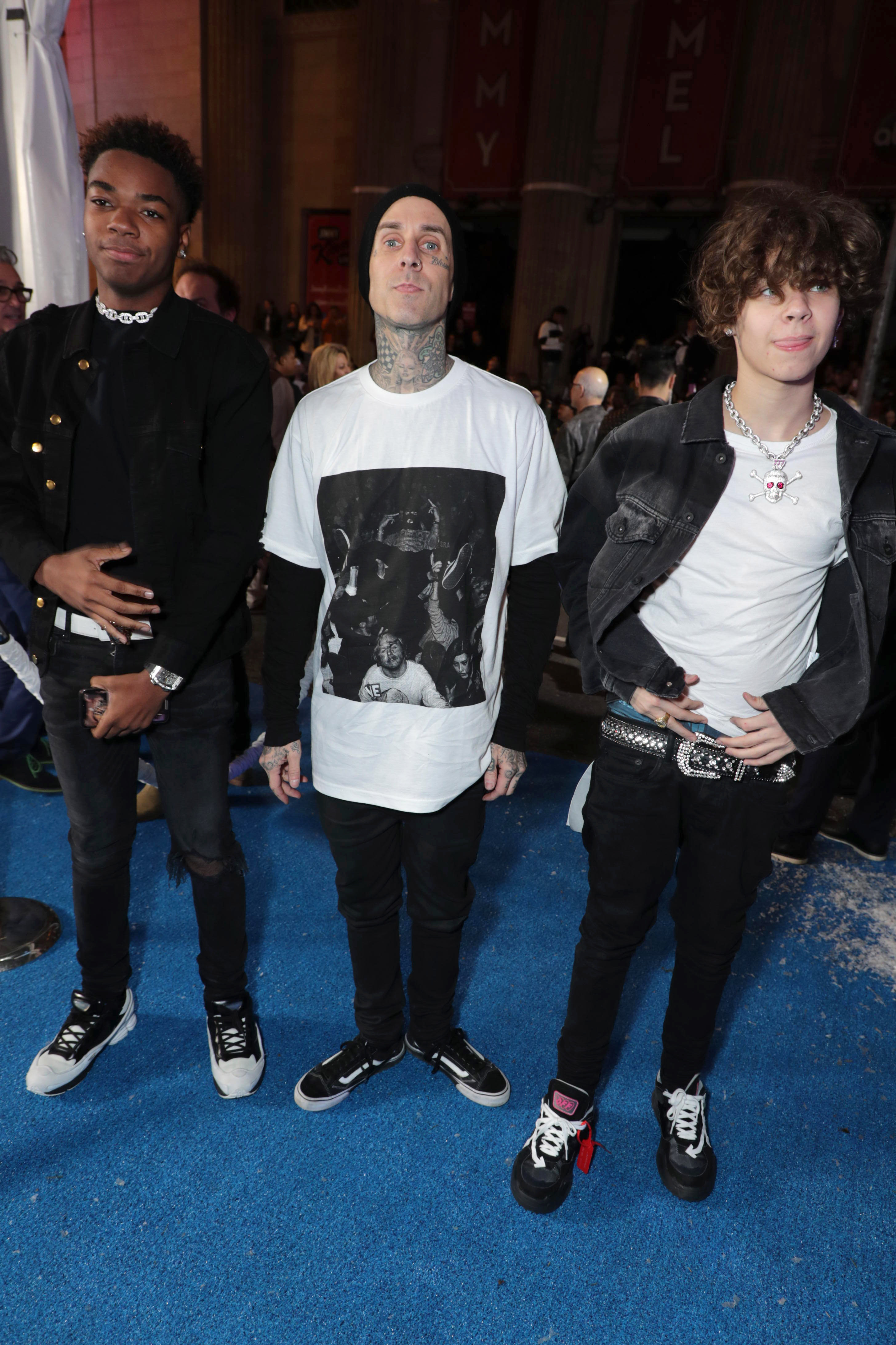 - Hollywood, CA – December 9, 2019: Travis Barker and Landon Asher Barker at the World Premiere of Columbia Pictures’ JUMANJI: THE NEXT LEVEL at the TCL Chinese Theatre.