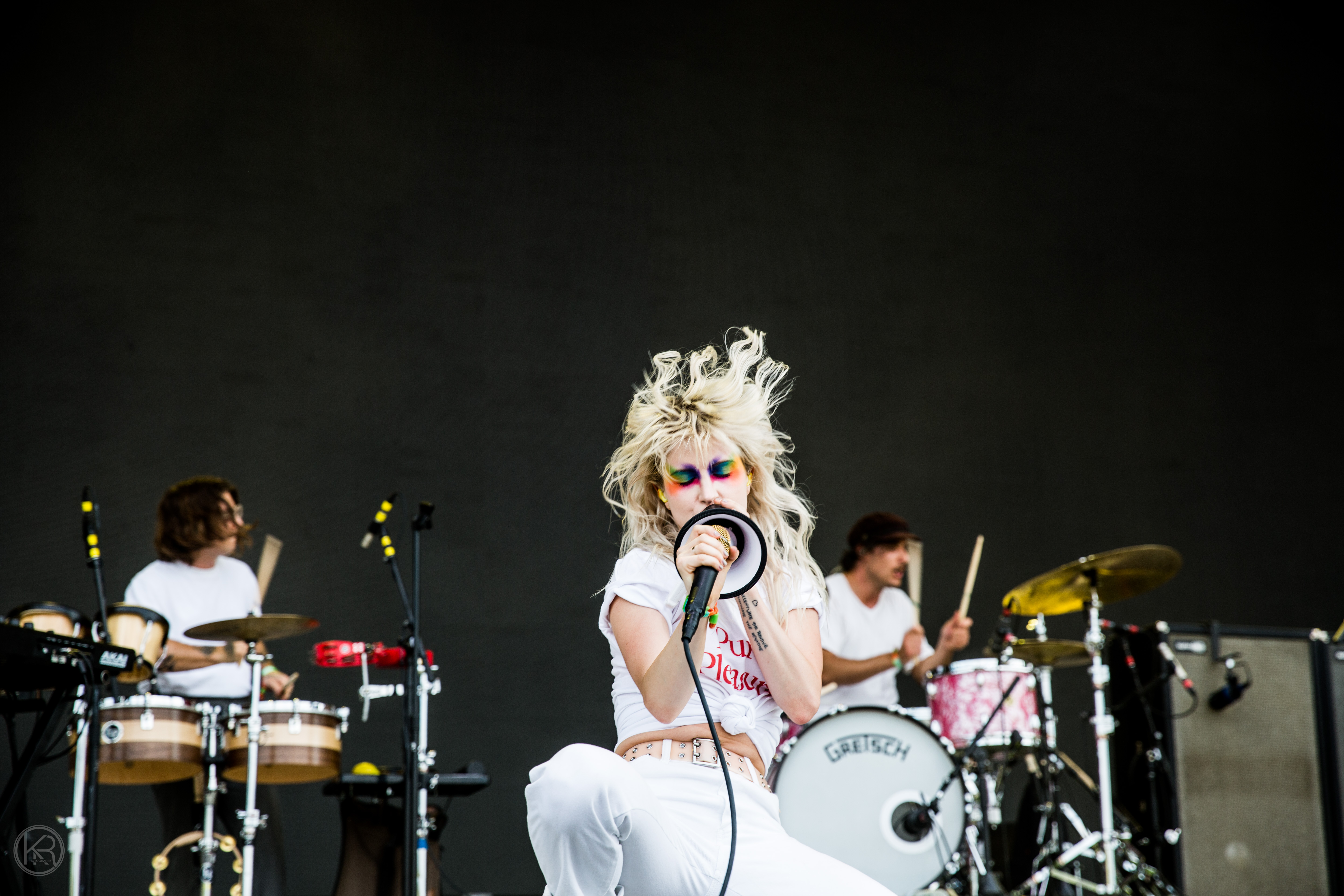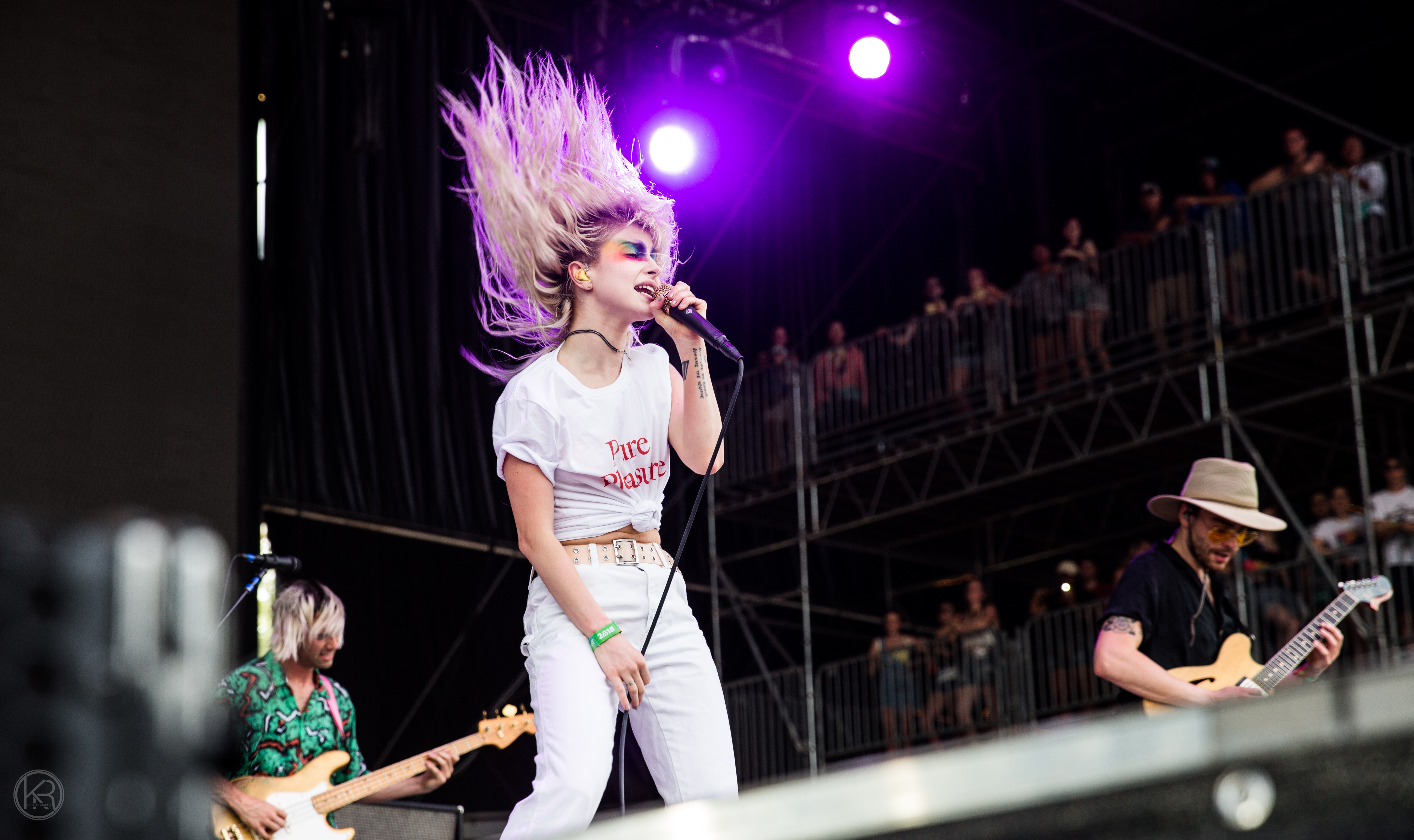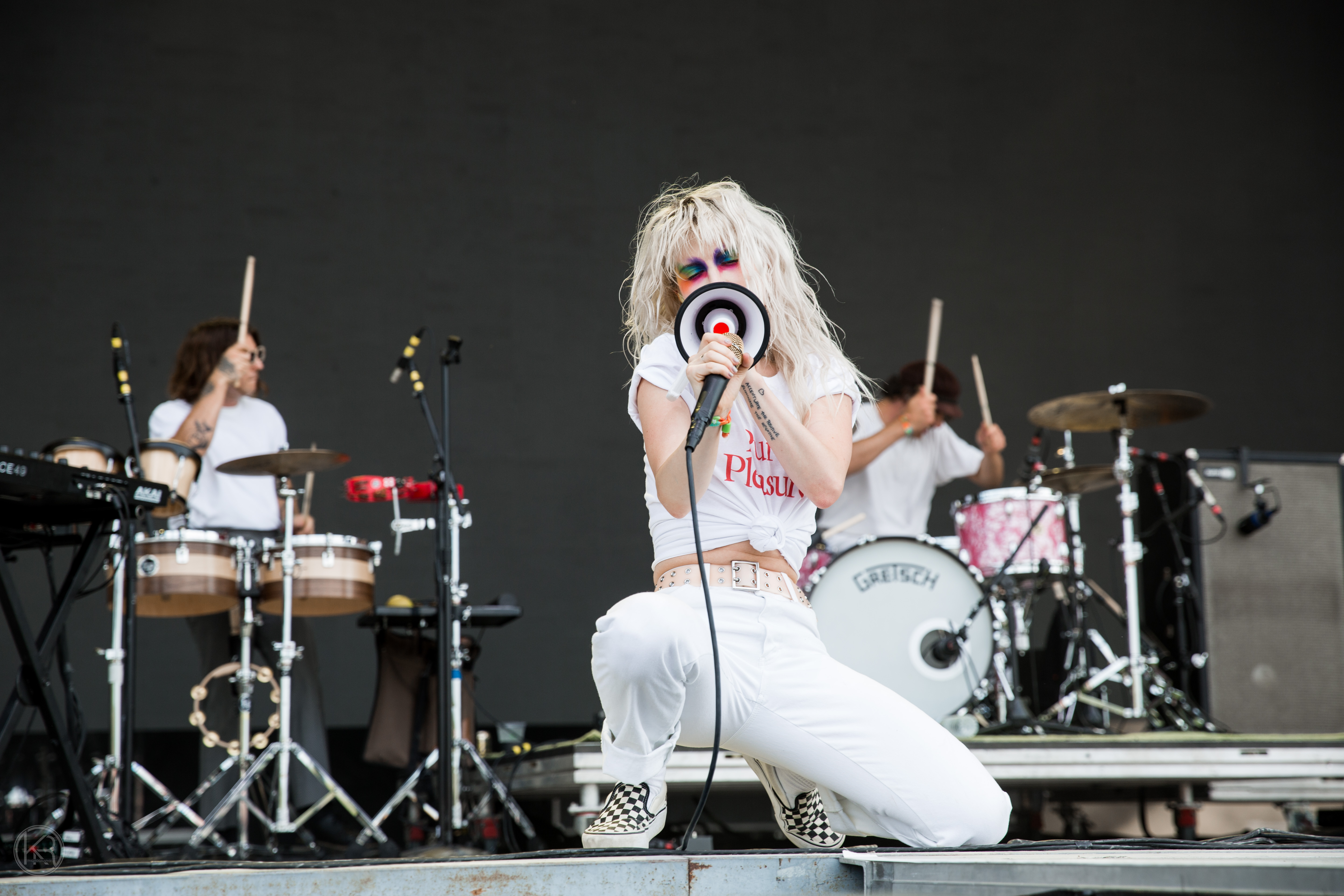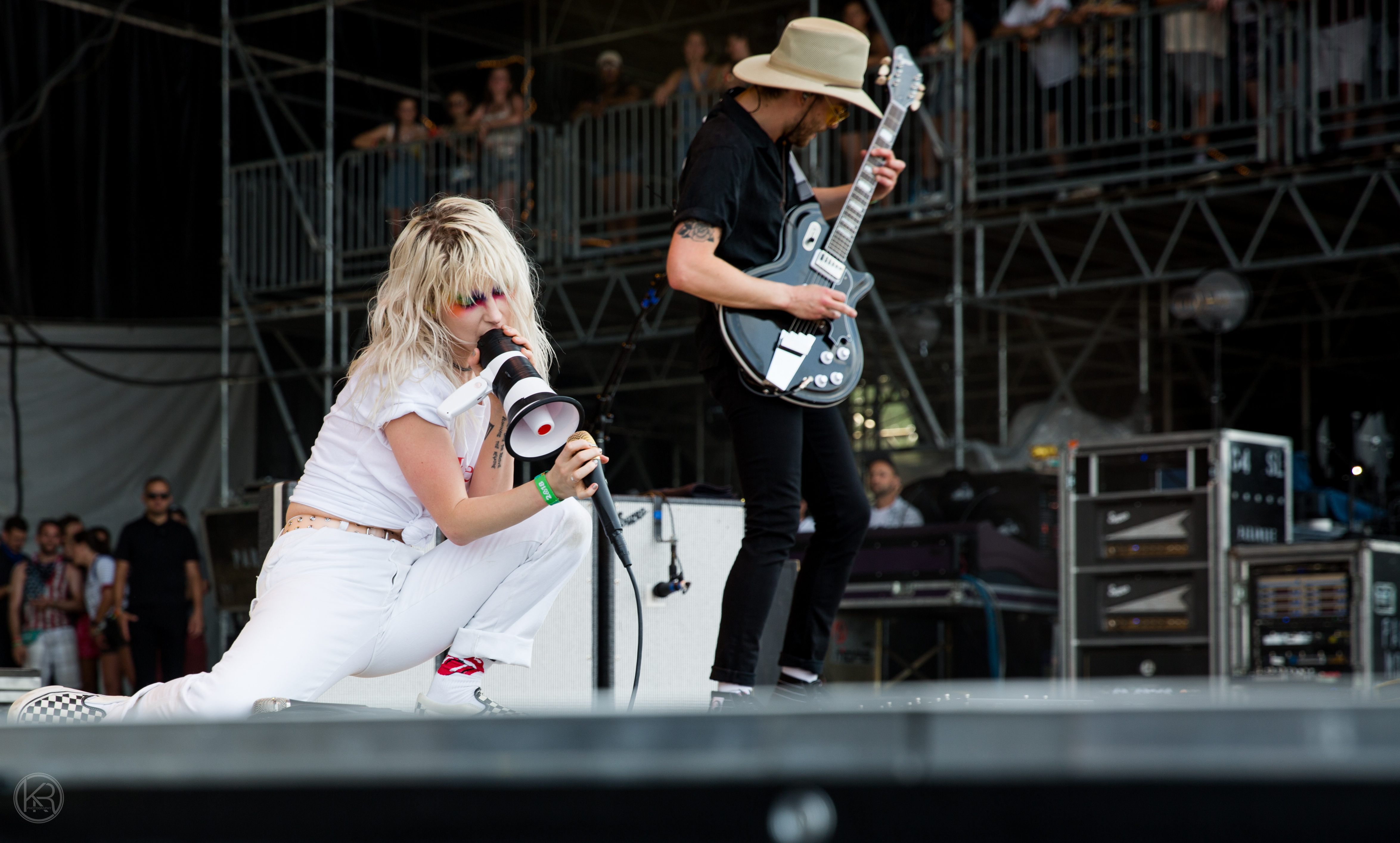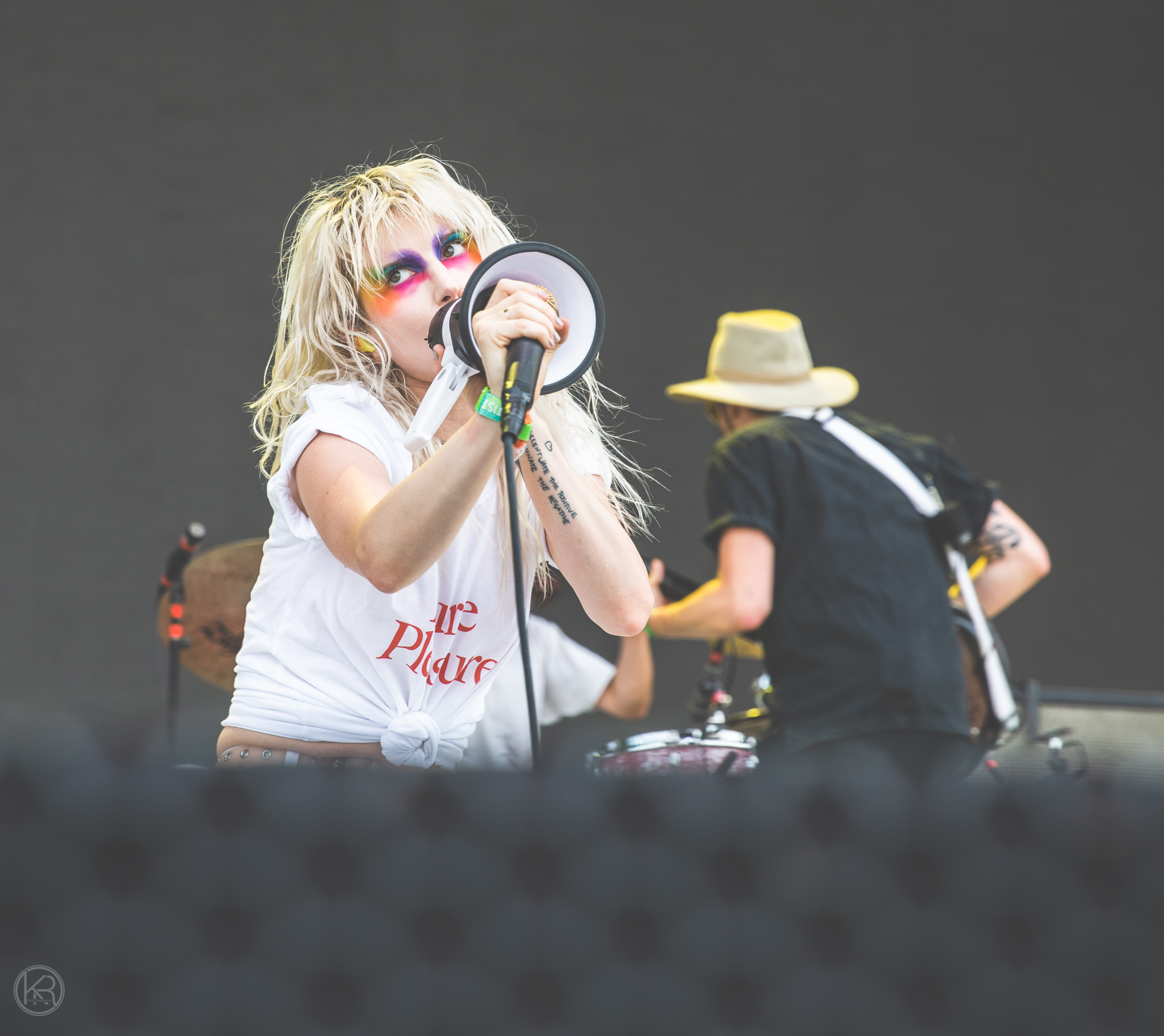 Paramore performed to a full crowd at Bonnaroo on Friday. When arriving on stage the band took a few moments in just hearing the crowd roar with screaming and cheering for the band. Lead singer Hayley Williams apologized for never performing in their “backyard” and thanked the crowd for waiting. Hayley donned colorful pride themed eye makeup and megaphone. Hayley took the time to address the current times mentioning suicide and chef Anthony Bourdain as seen in the video above.