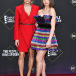 - 2019 E! PEOPLE’S CHOICE AWARDS — Pictured: (l-r) Hunter King and Joey King arrives to the red carpet during the 2019 E! People’s Choice Awards held at the Barker Hangar on November 10, 2019 — (Photo by: Amy Sussman/E! Entertainment)