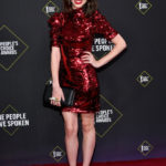 - 2019 E! PEOPLE’S CHOICE AWARDS — Pictured: Andrea Russett arrives to the red carpet during the 2019 E! People’s Choice Awards held at the Barker Hangar on November 10, 2019 — (Photo by: Amy Sussman/E! Entertainment)