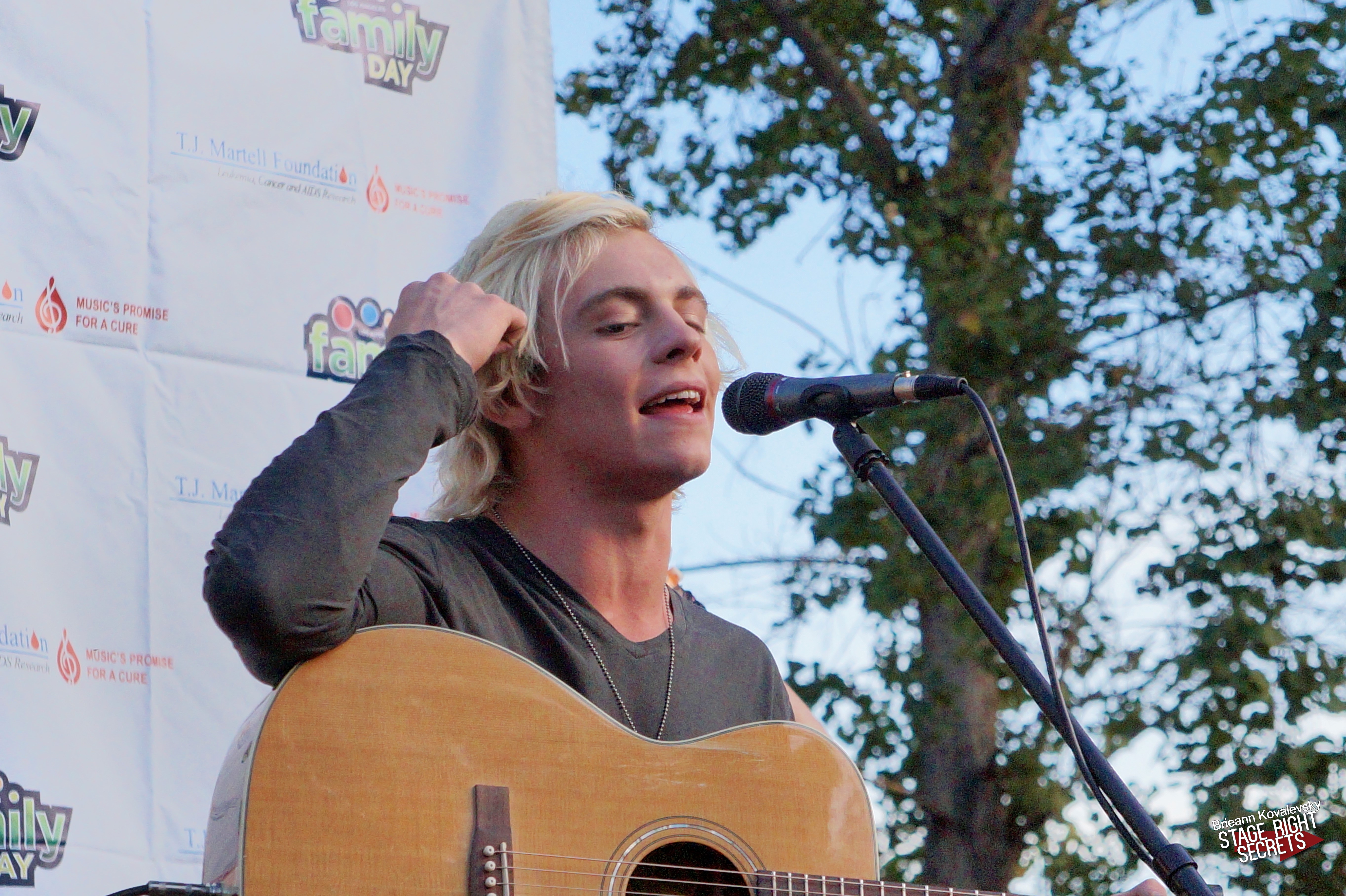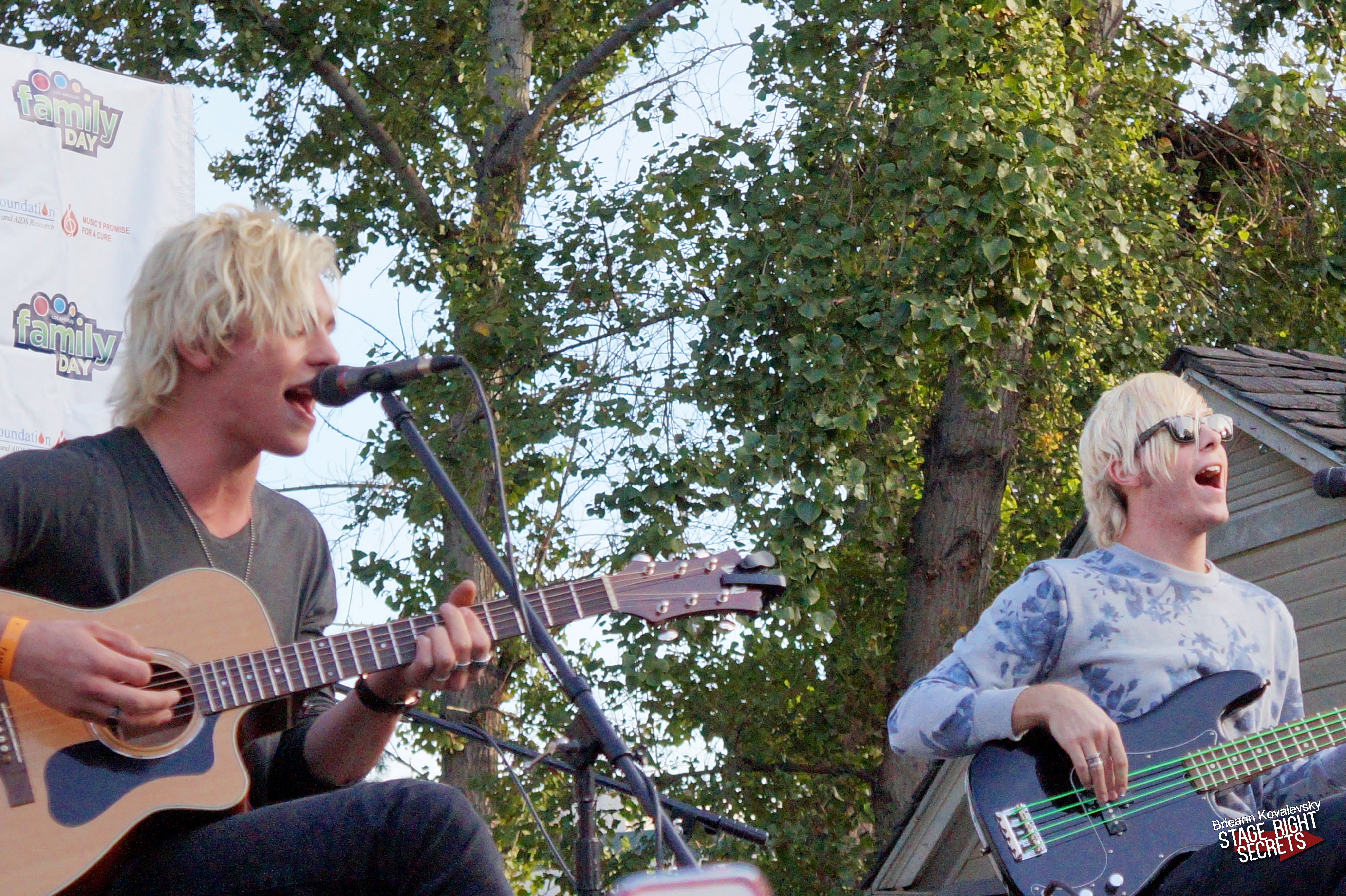 The girls were screaming, the sun was going behind the trees, and the parents were checking the time on their phones.  It was finally time for R5 to hit the stage.  Playing in their hometown, R5 started off their set with Things Are Looking Up and the whole crowd started singing along.  The band also played their new single Smile that just came out about a week ago and it was their first time ever playing it live for an audience.  You can also buy that single on itunes now!
